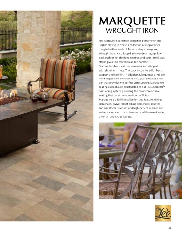 Wrought Iron. Hand forged extra-wide arms, a pillow-