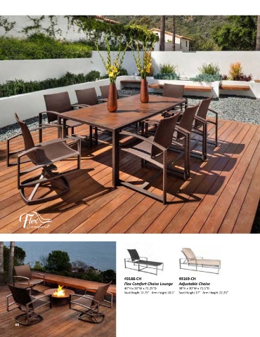 49188-CH 49169-CH Flex Comfort Chaise Lounge Adjustable Chaise 40”H x 30”W x 71.25”D 38”H x 30”W x 71.5”D Seat Height 14.75” Arm Height 20.5” Seat Height 17” Arm Height 22.25” 60 60