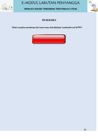 E-MODUL LARUTAN PENYANGGA BERBASIS INKUIRI TERBIMBING TERINTEGRASI STEAM EVALUASI 2 Untuk mengukur pemahaman dari materi yang telah dipelajari, kerjakanlah soal berikut! 11