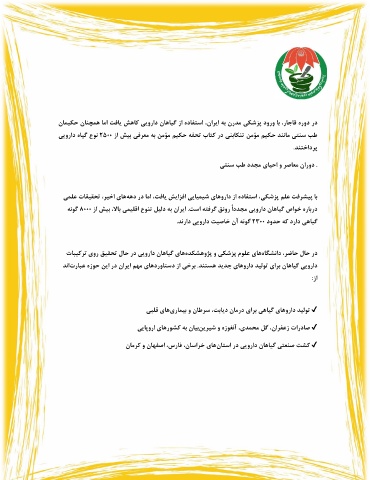 درباره خواص گیاهان دارویی مجدد ًا رونق گرفته است .ایران به دلیل تنوع اقلیمی بالا ،بیش از ۸۰۰۰گونه