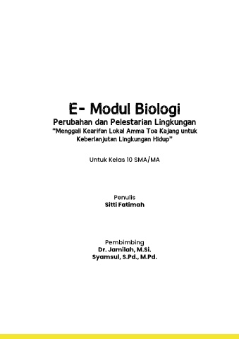 E- Modul Biologi Perubahan dan Pelestarian Lingkungan “Menggali Kearifan Lokal Amma Toa Kajang untuk Keberlanjutan Lingkungan Hidup” Untuk Kelas 10 SMA/MA Penulis Sitti Fatimah Pembimbing Dr. Jamilah, M.Si. Syamsul, S.Pd., M.Pd.