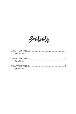 Contents CHAPTER TITLE ...............................................1 Subtitle CHAPTER TITLE .............................................. 3 Subtitle CHAPTER TITLE .............................................. 9 Subtitle