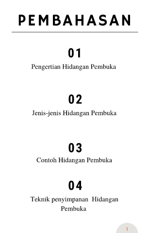 PEMBAHASAN 01 Pengertian Hidangan Pembuka 02 Jenis-jenis Hidangan Pembuka 03 Contoh Hidangan Pembuka 04 Teknik penyimpanan Hidangan Pembuka 1