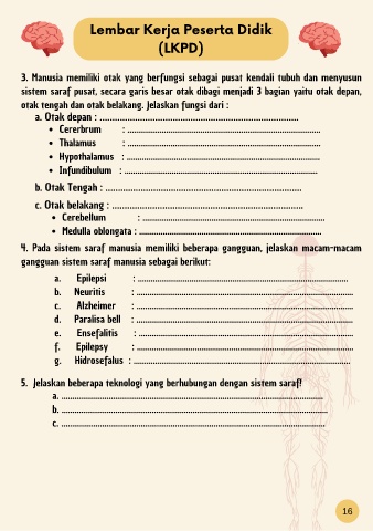 3. Manusia memiliki otak yang berfungsi sebagai pusat kendali tubuh dan menyusun