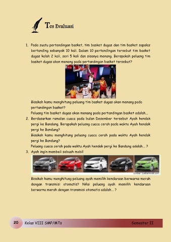 1. Pada suatu pertandingan basket, tim basket dugas dan tim basket sapalas