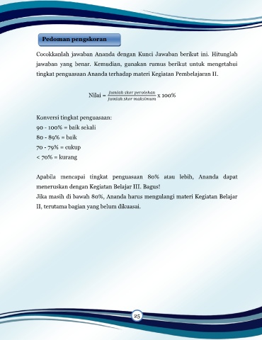 Jika masih di bawah 80%, Ananda harus mengulangi materi Kegiatan Belajar