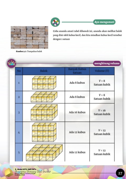 Coba ananda amati tabel dibawah ini, ananda akan melihat balok