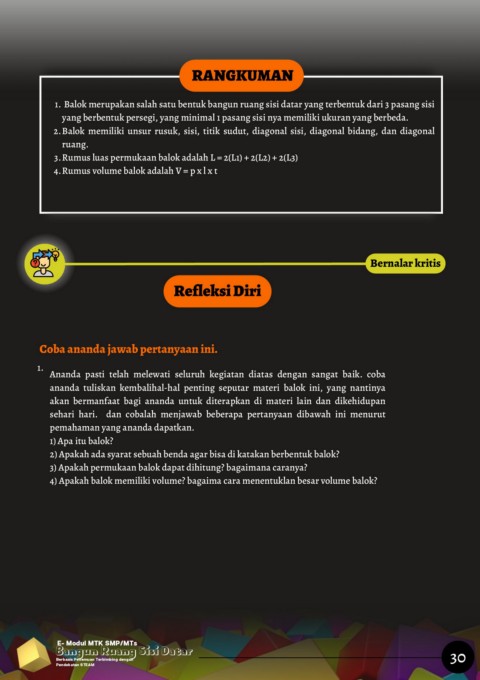 ananda tuliskan kembalihal-hal penting seputar materi balok ini, yang nantinya