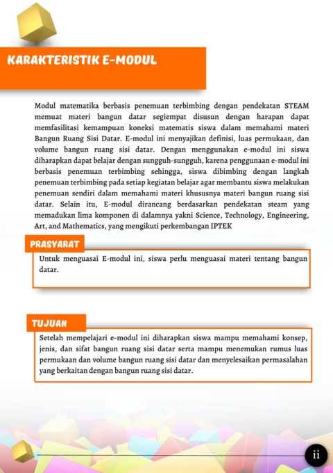 Bangun Ruang Sisi Datar. E-modul ini menyajikan definisi, luas permukaan, dan