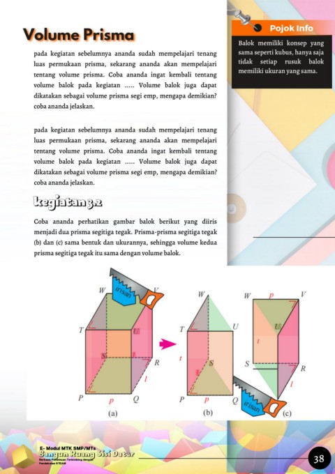 tentang volume prisma. Coba ananda ingat kembali tentang