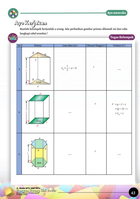 Buatlah kelompok berjumlah 4 orang. lalu perhatikan gambar prisma dibawah ini dan coba
