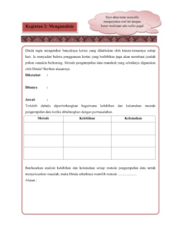 Kegiatan 2: Menganalisis benar meskipun ada resiko gagal