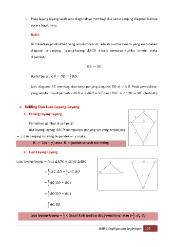 - Pada layang-layang salah satu diagonalnya membagi dua sama panjang diagonal lainnya