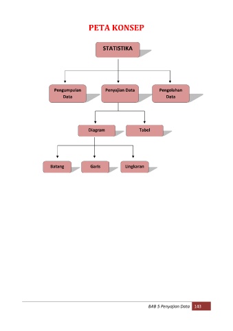 PETA KONSEP STATISTIKA Pengumpulan Penyajian Data Pengolahan Data Data Diagram Tabel Batang Garis Lingkaran BAB 5 Penyajian Data 143