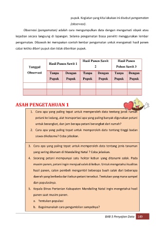 pengamatan. Dibawah ini merupakan contoh lembar pengamatan untuk mengamati hasil panen