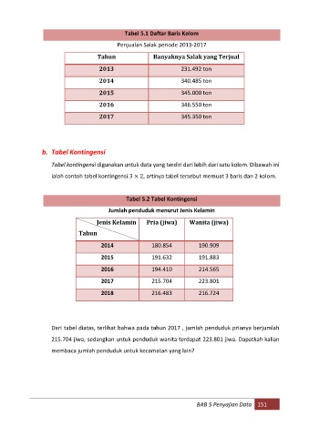 Tabel kontingensi digunakan untuk data yang terdiri dari lebih dari satu kolom. Dibawah ini
