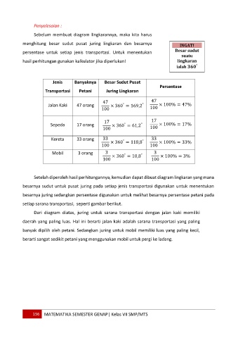 besarnya sudut untuk pusat juring pada setiap jenis transportasi digunakan untuk menentukan