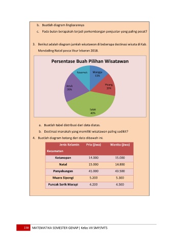 3. Berikut adalah diagram jumlah wisatawan di beberapa destinasi wisata di Kab.