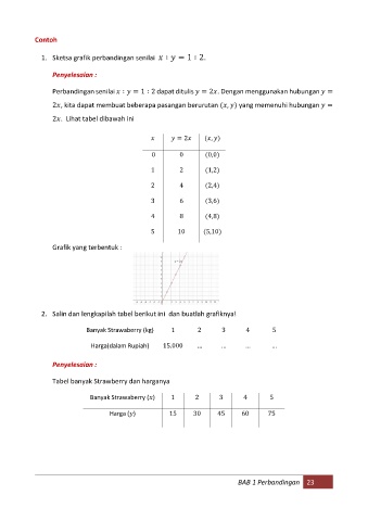 Perbandingan senilai ∶ = 1 ∶ 2 dapat ditulis = 2 . Dengan menggunakan hubungan =