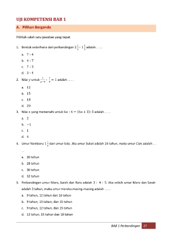 1. Bentuk sederhana dari perbandingan 2 ∶ 1 adalah . . . .