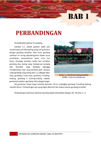 nabalik) 40 cm. Perbandingan apa yang dapat dibentuk dari kedua ukuran gordang tersebut?