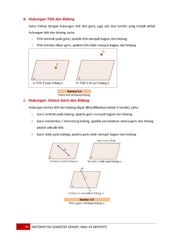 - Titik terletak pada garis, apabila titik menjadi bagian dari bidang.
