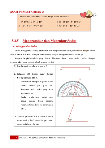 Untuk menggambar sudut,, diperlukan alat pengukur besar sudut, yaitu busur derajat. Busur