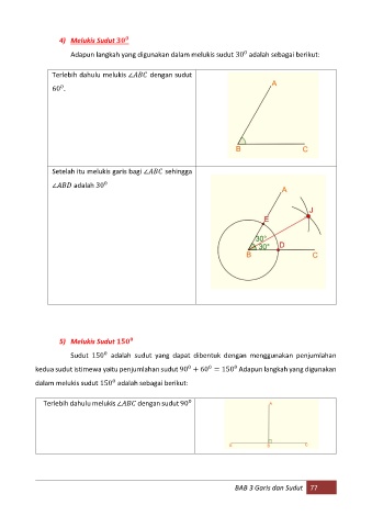 Adapun langkah yang digunakan dalam melukis sudut 30 adalah sebagai berikut: