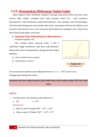 berpelurus (bersuplemen) dan sudut berpenyiku (berkomplemen) sedangkan sudut yang lainnya