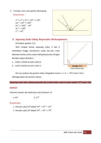 b. sudut b adalah penyiku sudut a Gambar 3.21