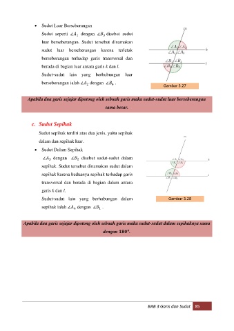 berseberangan ialah ∠ dengan ∠ . Gambar 3.27