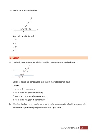 2. Diberikan tiga buah garis yaitu k, l dan m serta sudut-sudut yang berada di lingkungannya. k