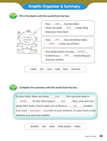 Step Complete the summary with the words from the box.