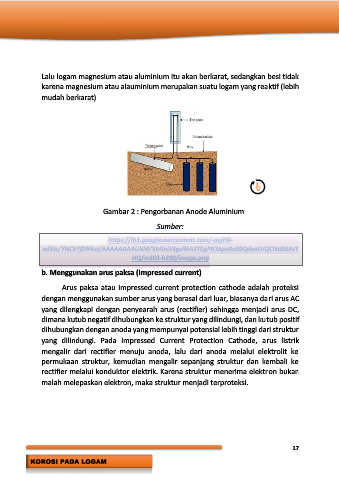 dihubungkan dengan anoda yang mempunyai potensial lebih tinggi dari struktur