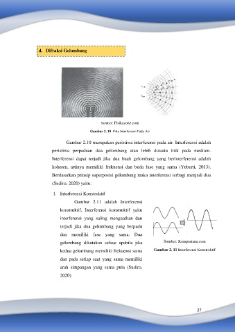 Gambar 2.10 merupakan peristiwa interferensi pada air. Interferensi adalah