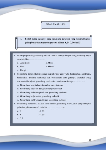 1. Dalam pergerakan gelombang dari satu tempat menuju tempat lain gelombang hanya