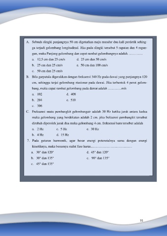 7. Pada getaran harmonik, agar besar energi potensialnya sama dengan energi