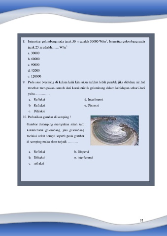 8. Intensitas gelombang pada jarak 50 m adalah 30000 W/m . Intensitas gelombang pada
