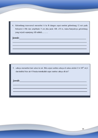 4. Gelombang transversal merambat A ke B dengan cepat rambat gelombang 12 m/s pada
