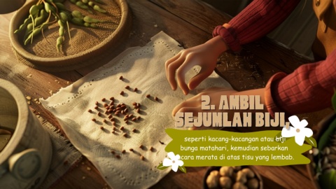 2. Ambil sejumlah biji, seperti kacang-kacangan atau biji bunga matahari, kemudian sebarkan secara merata di atas tisu yang lembab.