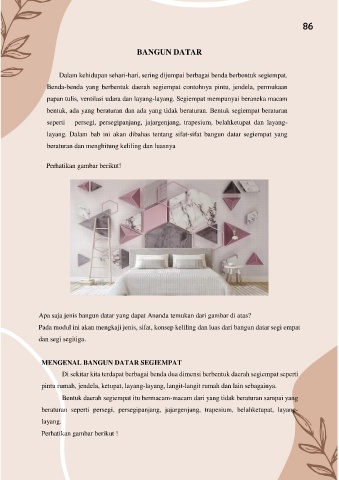Pada modul ini akan mengkaji jenis, sifat, konsep keliling dan luas dari bangun datar segi empat
