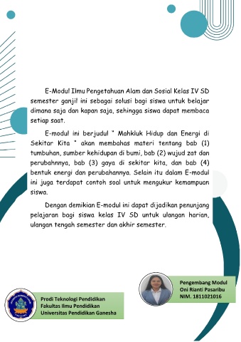 E-modul ini berjudul “ Mahkluk Hidup dan Energi di