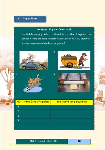 NO Nama Benda/kegiatan Jenis Gaya yang digunakan