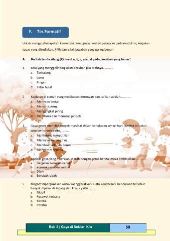1. Bola yang menggelinding akan berubah jika arahnya………….