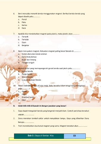 6. Beni mencoba menarik benda menggunakan magnet. Berikut benda-benda yang
