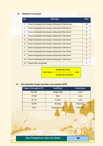 IV. Skor diperoleh dengan penilaian acuan patokan (PAP)