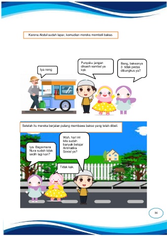 Karena Abdul sudah lapar, kemudian mereka membeli bakso.