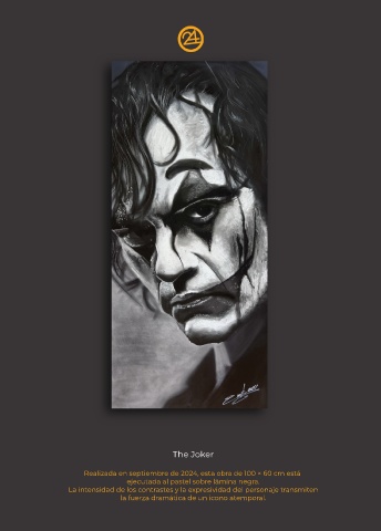 The Joker Realizada en septiembre de 2024, esta obra de 100 × 60 cm está ejecutada al pastel sobre lámina negra. La intensidad de los contrastes y la expresividad del personaje transmiten la fuerza dramática de un icono atemporal.