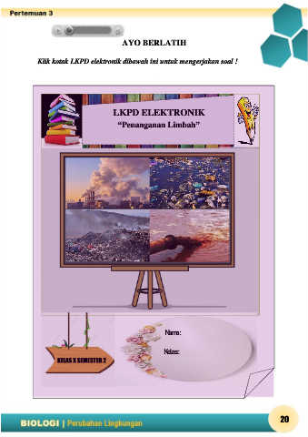 AYO BERLATIH Klik kotak LKPD elektronik dibawah ini untuk mengerjakan soal ! LKPD ELEKTRONIK “Penanganan Limbah” Nama : Kelas : KELAS X SEMESTER 2 20