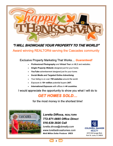 loretta dirosa@cbrealty com www lorettadirosahomes com Multi Million Dollar Producer SRES 1973 SW Savage Blvd Port St Lucie FL 34953